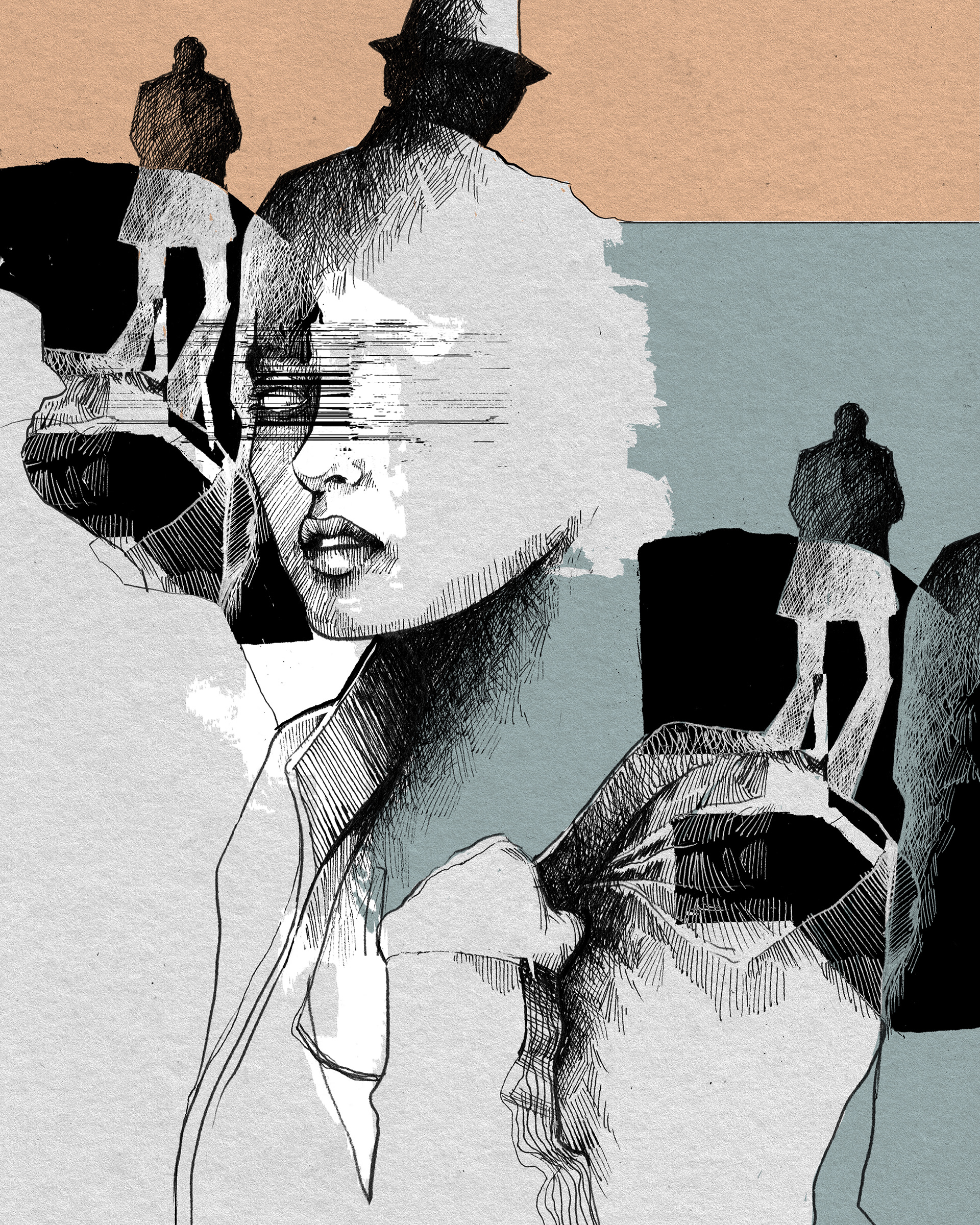 Ink and pen illustration, collage and digital composition.