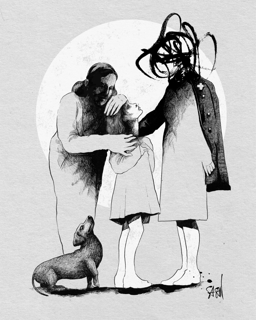 Pen and ink illustration on handmade paper.